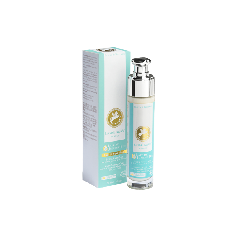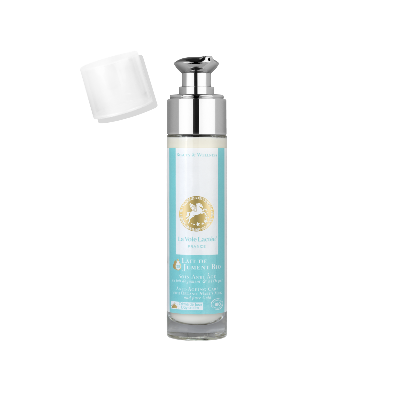 Cet activateur de jeunesse est un cocktail unique de lait de jument bio (30%), d’eau florale de bleuet, d’huile d’olive, d’huile de carthame, d’aloé vera, d’extrait de Pelvétia et d’or.