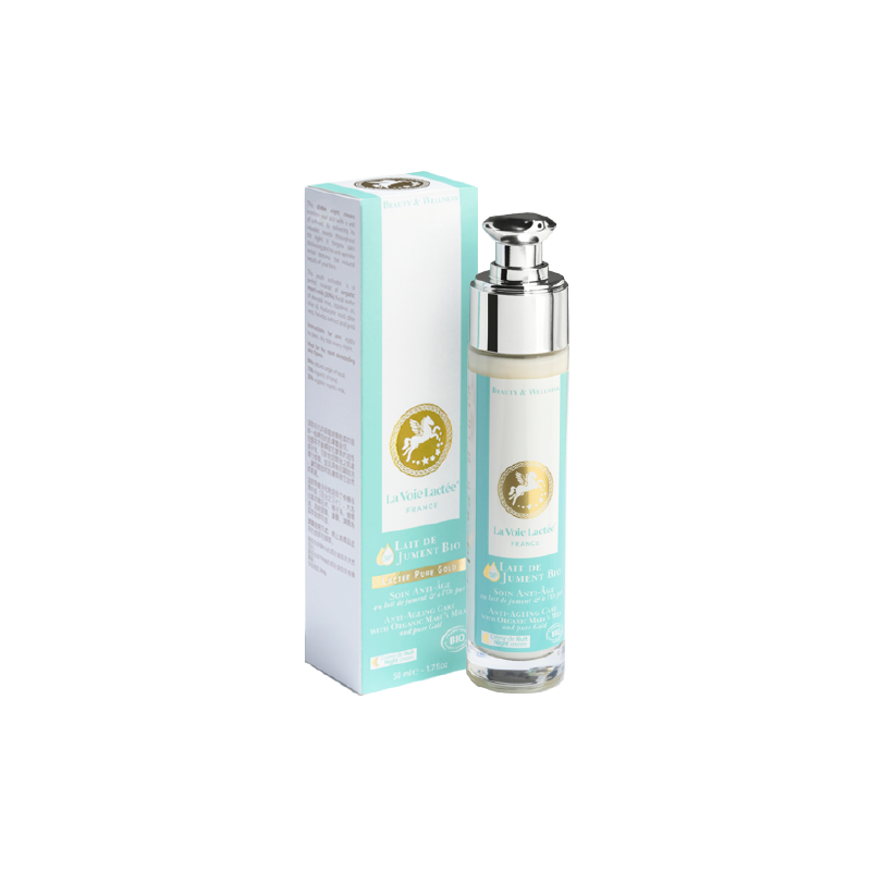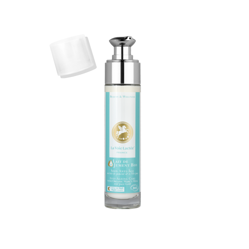 Cet activateur de jeunesse est un parfait cocktail de lait de jument bio (30%), d’eau florale de rose de Damas, d’huile de noisette, d’huile d’olive, d’acide hyaluronique, d’aloe vera, d’extrait de Pelvétia et d’or.