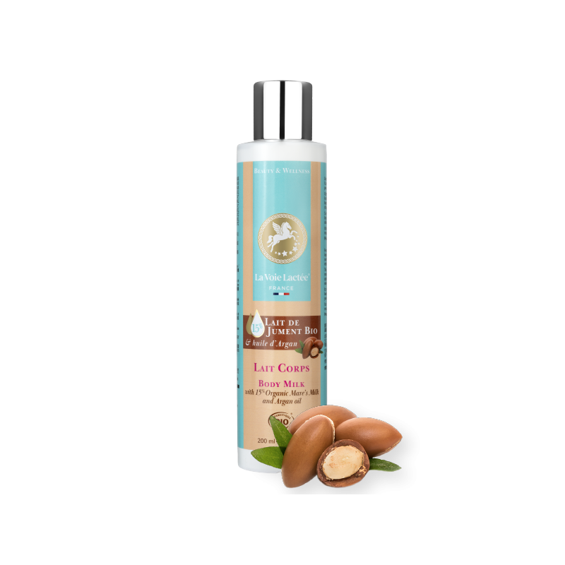 Lait pour le corps au Lait de jument bio, et à l'huile d’Argan.Lait pour le corps au Lait de jument bio, et à l’huile d’Argan.