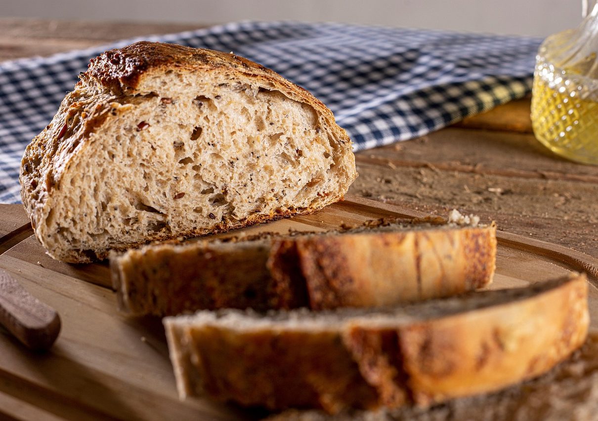 Un pain de campagne dans lequel se trouve une multitude d’éclats de noix