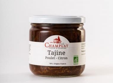 Poulet 25% origine France, carottes, courgettes, coulis de tomate de Provence à l’Ancienne, abricots, oignons, raisins, citrons confits 3%, ail, sel de Guérande, huile d’olive vierge extra, ras el hanout.