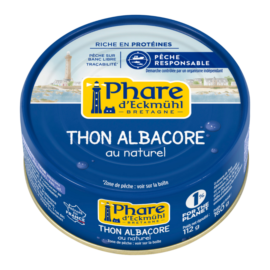 Riche en protĂ©ines et pĂªchĂ© de façon responsable, selon un cahier des charges de 46 critères, dans des zones pĂ©rennes et selon une mĂ©thode de pĂªche sĂ©lective, la senne sur banc libre, Le thon albacore au naturel est prĂ©parĂ© Ă Douarnenez dans les ateliers en Bretagne.
