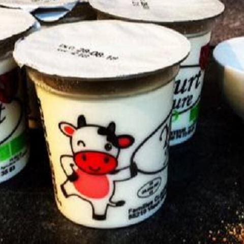Des yaourts natures brassés à la main, avec de vrais morceaux de fruits.